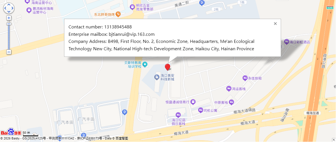 Company Address: B498, First Floor, No. 2, Economic Zone, Headquarters, Meian Eco-Tech New City, National High-tech Development Zone, Haikou City, Hainan